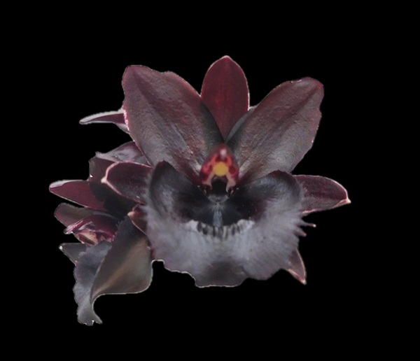 シクノチェス系の最新登録品種。黒味の強い色彩で、光沢感あるリップもカッコイイ。写真は初花で一輪ですが株が大きくなると10数輪咲くので見事。